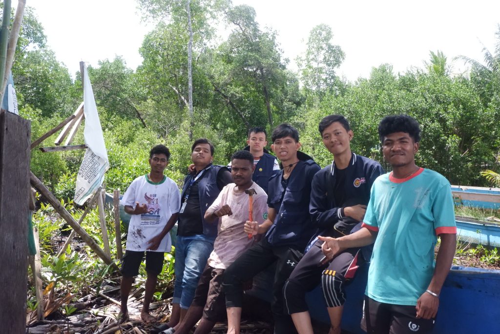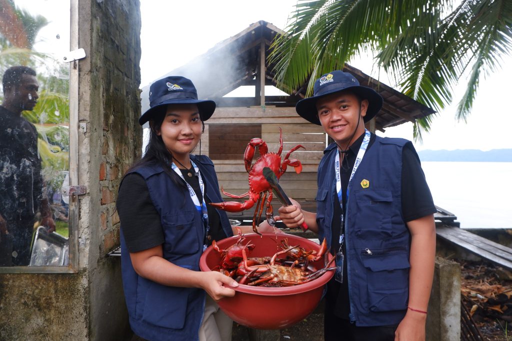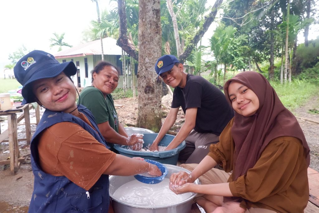 Mahasiswa KKN ikut serta dalam proses pengasapan kepiting bersama masyarakat setempat, menjaga cita rasa khas sekaligus melestarikan tradisi kuliner lokal